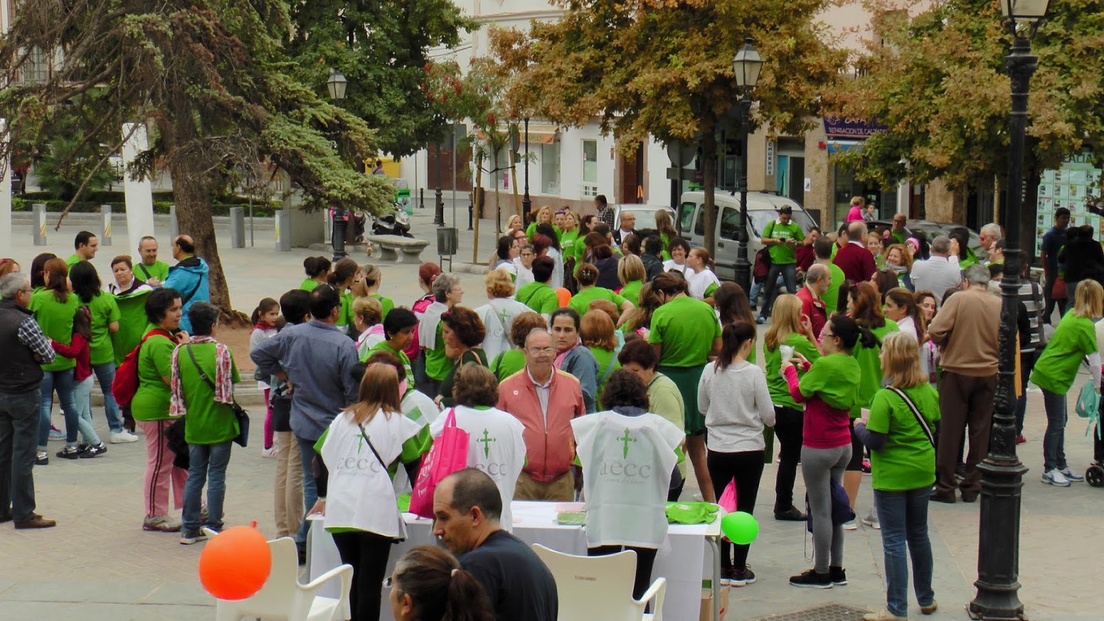 Más de un centenar de personas se acercaron hasta la Plaza de San Francisco para iniciar la caminata. Paseo que hizo un alto en el patio del ayuntamiento de la ciudad para que la vicepresidenta de la AECC de Antequera, Carmen Rivas,leyese un manifiesto.
