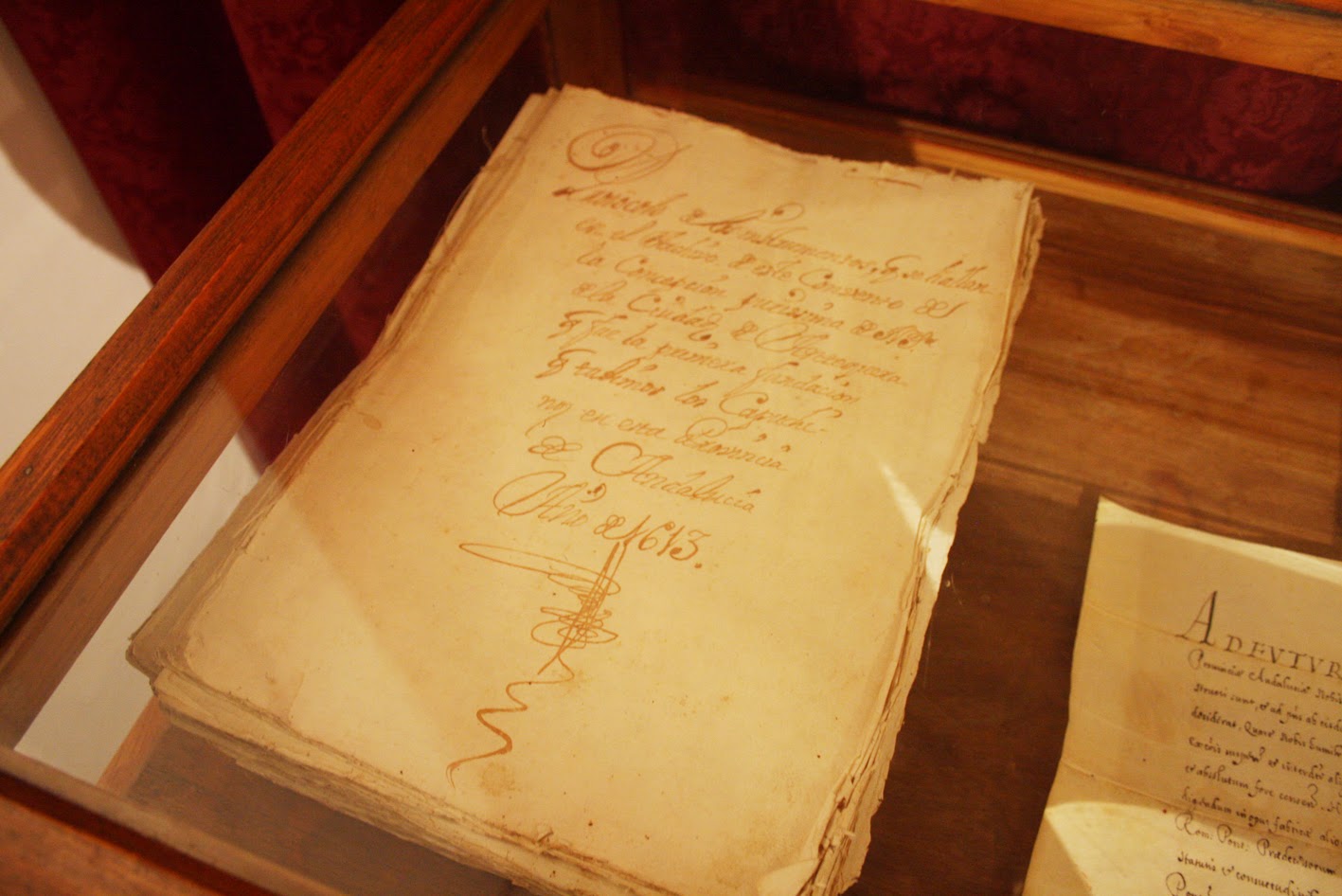 La exposición, que puede verse hasta el 27 de octubre en el convento de la Orden de Hermanos Menores Capuchinos, muestra por primera vez al público piezas que narran la llegada de esta orden a Antequera, allá por 1613. Su primera parada fue una ermita a unos 2 kilómetros de su actual ubicación subiendo la carretera del Torcal, pero por los difíciles accesos los trasladaron a su espacio actual 30 años después. «La Virgen de la Cabeza que se expone es la primera de la santísima Virgen que los Capuchinos tuvieron en Antequera», detalla mientras se dirige a la vitrina que guarda los documentos de origen del convento.