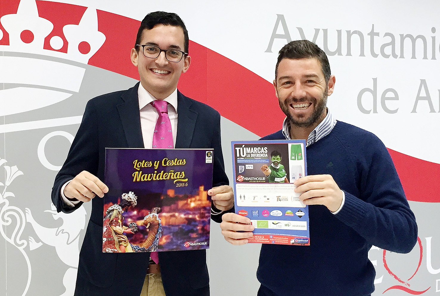 El teniente de alcalde delegado de Patrimonio Mundial, Juan Rosas, y el responsable de marketing de Abasthosur, Mario Carmona, se reunían hace escasos días en el Ayuntamiento para concretar e informar el apoyo que esta destacada firma de distribución local muestra a la candidatura del Sitio de los Dólmenes a Patrimonio Mundial de la Unesco. En este sentido, cabe reseñar que el logotipo promocional de la candidatura aparece en la portada de todos sus catálogos de lotes y productos navideños. Dicha publicación, cuya portada también está dedicada este año a Antequera, ha sido repartida por más de 10.000 establecimientos de toda España.