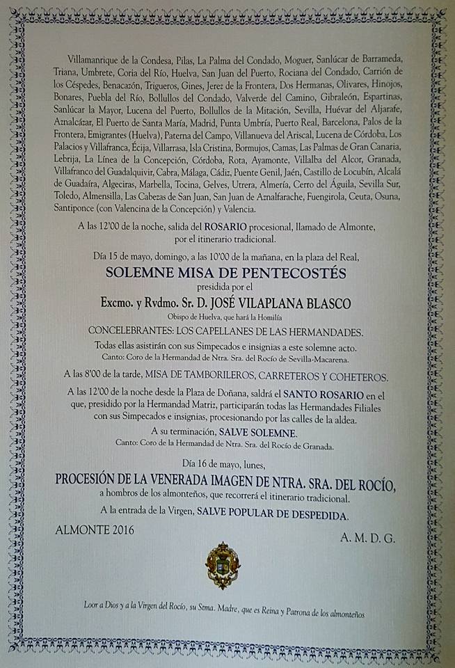 Al finalizar, Salve Solemne a cargo del Coro de la Hermandad del Rocío de Granada.