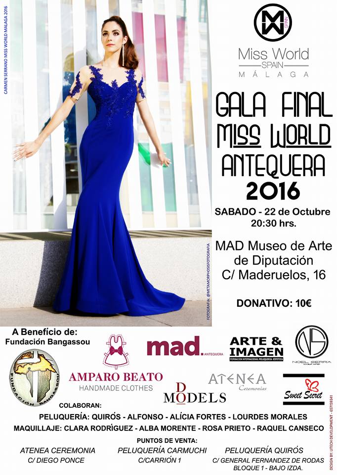 20.30 Gala Elección Miss World Antequera. MAD Antequera. Entrada donativo 10 euros. A beneficio de la Fundación Bangassou.