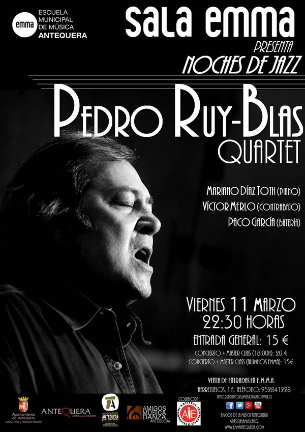 Venta de localidades en la Escuela de Música (C/ Herrezuelos 1 A) de lunes a viernes, de 16:00 a 21:00 h. Información: Tel. 952841228-www.emmaantequera.com Organiza: Escuela Municipal de Música de Antequera (EMMA)
