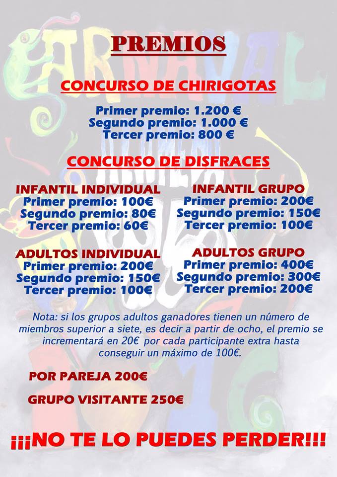 El domingo se realizará el tradicional pasacalles de las chirigotas donde podemos volver a escucharlas fundamentalmente en la plaza de la Constitución para posteriormente pasar a la entrega de premios que se realizará en la carpa.