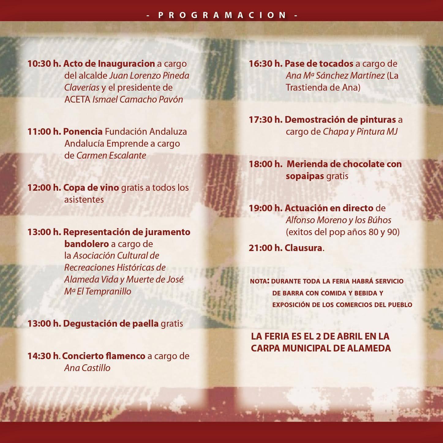 Feria de Comercio y Turismo de Alameda’, que se celebrará el próximo sábado, día 2 de abril, en la Carpa Municipal situada en el recinto ferial del municipio, el