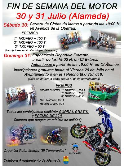Organizan este fin de semana del motor la Peña Motera El Tempranillo y Colabora el Ayuntamiento de Alameda.
