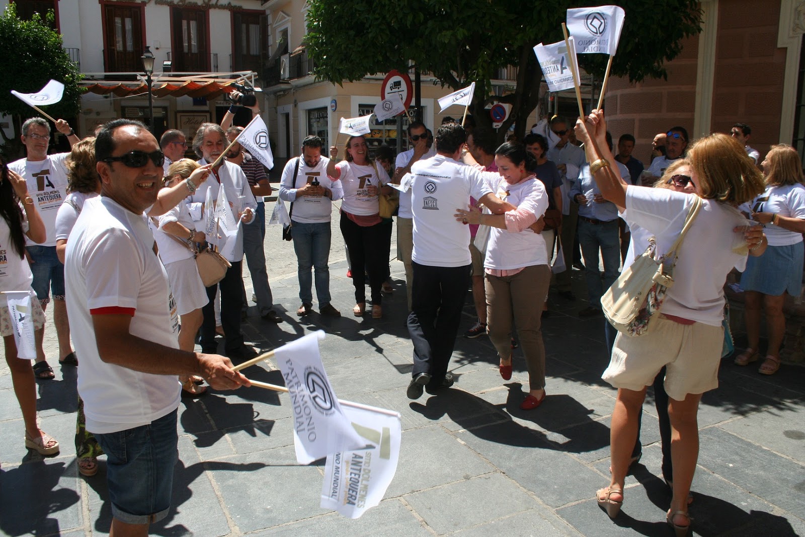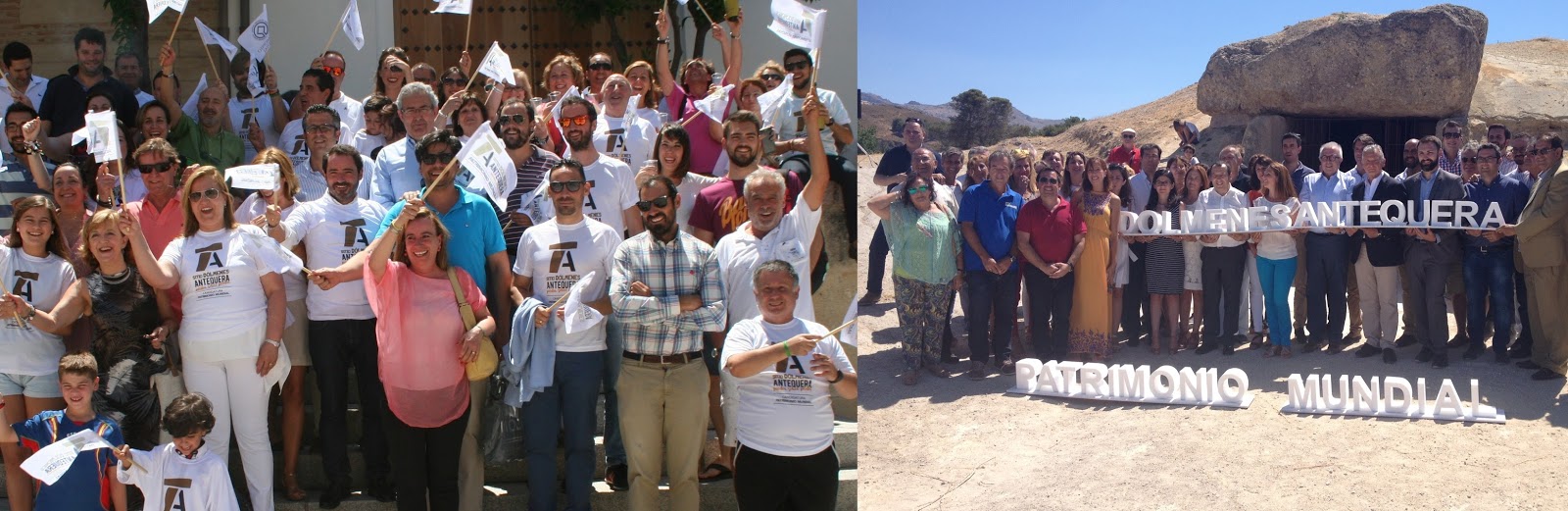 Una misma celebración; dos lugares diferentes. Decenas de antequeranos han festejado este viernes que los Dólmenes, junto con El Torcal y la Peña de los Enamorados son ya Patrimonio Mundial, con las celebraciones divididas entre el Conjunto Arqueológico y el Museo de la Cuidad de Antequera.