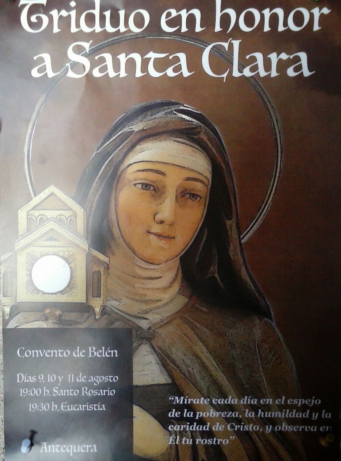 La Comunidad Religiosa de Clarisas del Convento de Belén de Antequera organizan Triduo en honor a Santa Clara con motivo de su Festividad.