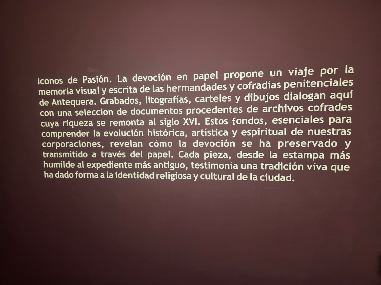 El alcalde de Antequera, Manolo Barón, ha destacado durante la presentación la «riquísima historia iconográfica» que atesoran las hermandades y cofradías de la ciudad. «Exponemos piezas del Archivo y del Museo de la Ciudad; desde grabados y legajos hasta carteles de enorme valor que son muestra de nuestra tradición secular de siglos».