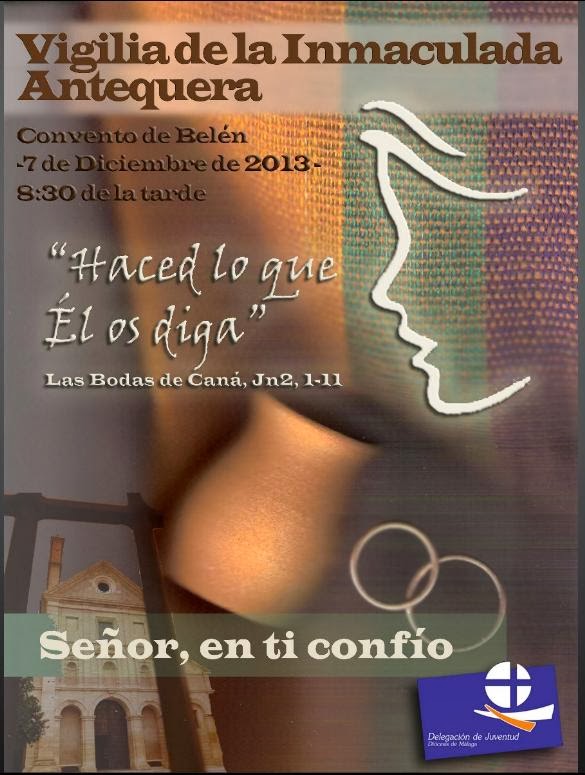 ANTEQUERA, SÁBADO 7 DICIEMBRE, CONVENTO DE BELÉN, 20.30 HORAS. Como viene siendo tradicional Iglesia Joven de Antequera organiza la vigilia de la Inmaculada. Una celebración que se realiza a las visperas de dicho día festivo y tan importante para la Iglesia Católica.