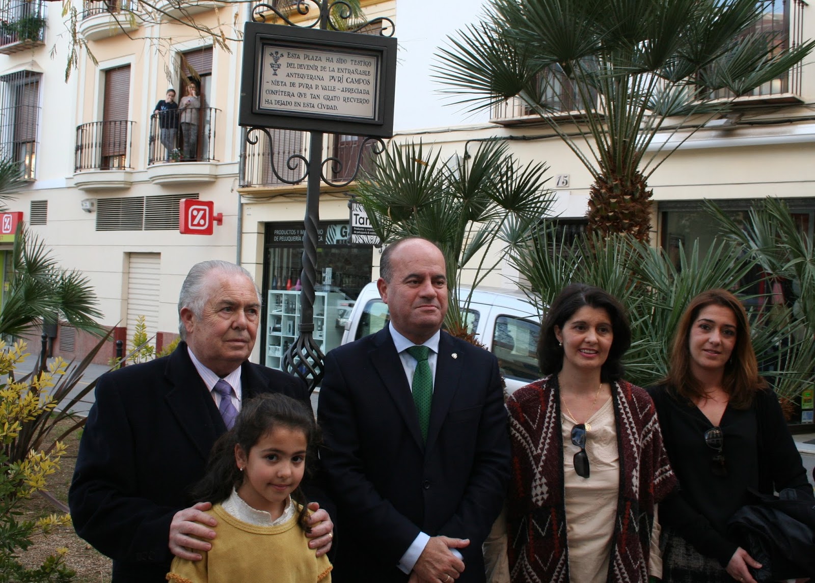 En abril de 2014 fallecía Purificación Campos Alcalá, muy conocida en Antequera por regentar la confitería Nieta de Pura P. Valle y también por su vinculación a la Semana Santa local. Casi dos años después el Ayuntamiento ha querido hacerle un homenaje colocando una placa en la Plaza de San Francisco, recordando a esta antequerana “ejemplar”.