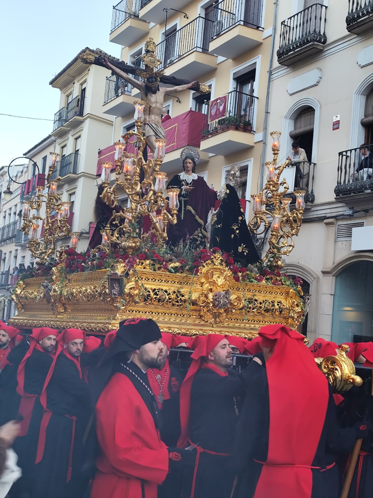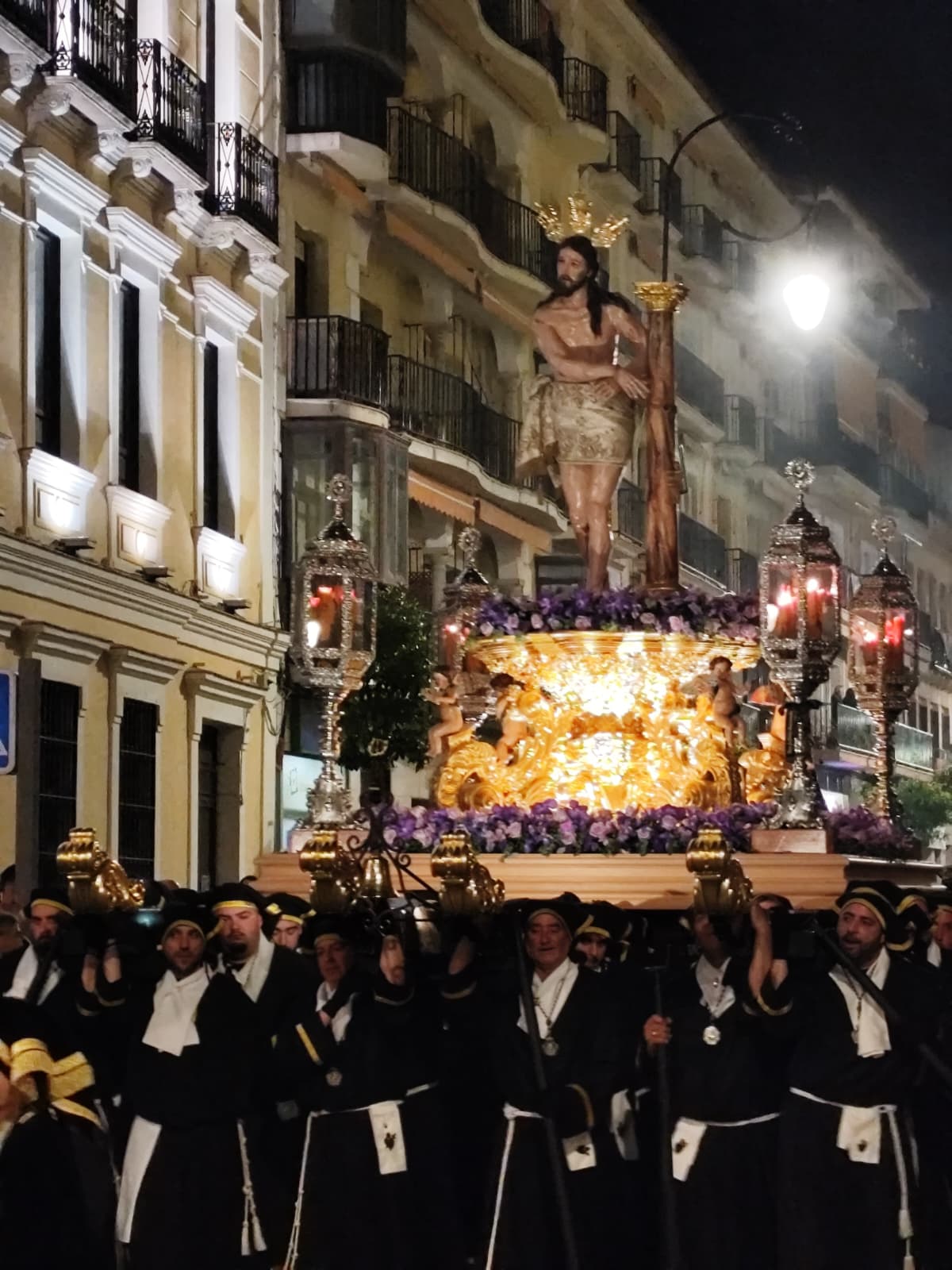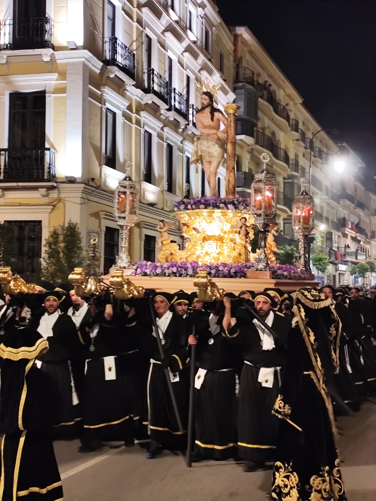 Los tres pasos llegaron a la calle con modificaciones que sus devotos llevan meses esperando. El trono del Señor Atado a la Columna, cuyo Hermano Mayor de Insignia es Juan Antonio Moreno Perea, recuperó la estructura metálica del antiguo trono del Señor Caído, al que se añadieron molduras doradas en oro fino, base de mármol rojo torcal y bordes negros, consiguiendo un resultado que actualiza la estética del paso sin romper con lo que siempre fue.