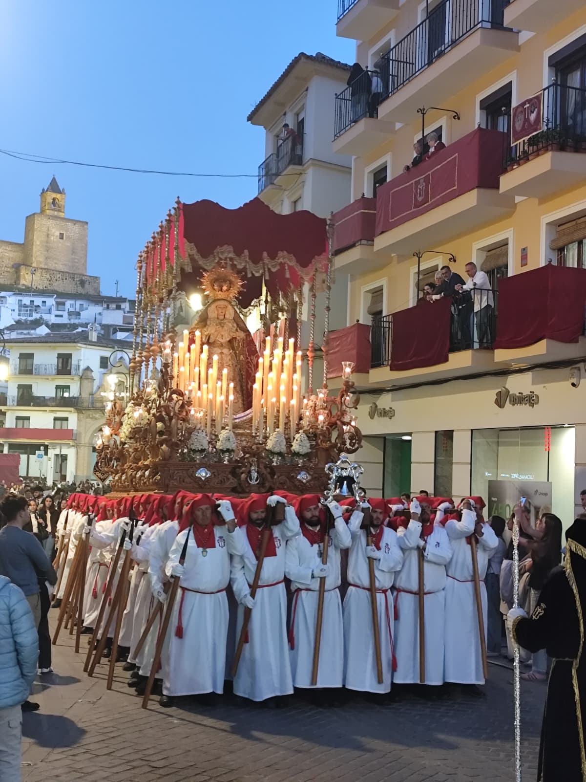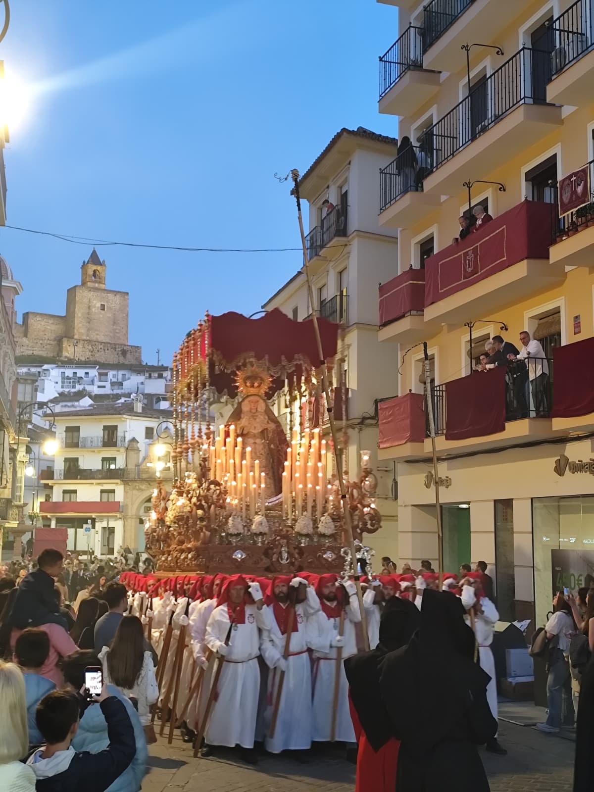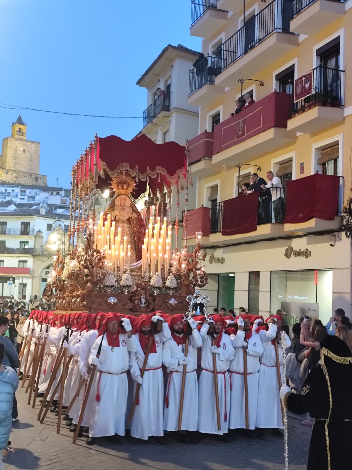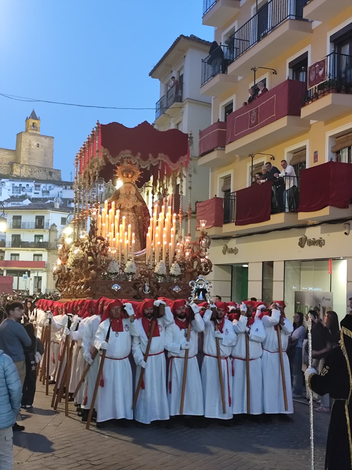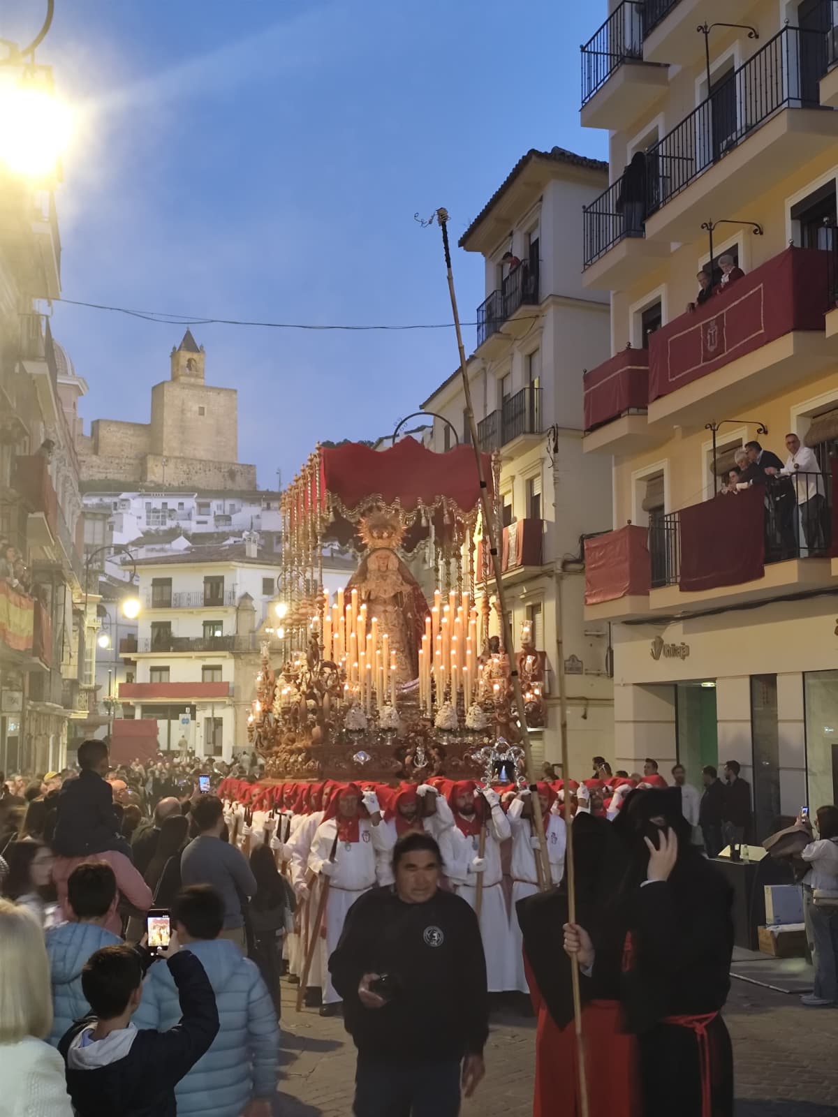 Las cofradías del Consuelo y los Dolores llevan más de tres siglos alumbrando la ciudad. Una nació en 1701; la otra, un año después. Las dos han visto cambiar Antequera sin cambiar ellas demasiado en lo esencial: la imagen, el paso, los fieles que la acompañan y el silencio que se abre cuando el cortejo dobla una esquina. Y las dos comparten cada Jueves Santo la misma obligación: correr la vega. Subir corriendo con los tronos al hombro por las cuestas empinadas del barrio para que sus imágenes alcen la vista sobre la llanura y la bendigan, como se hacía cuando Antequera vivía de lo que el campo daba.