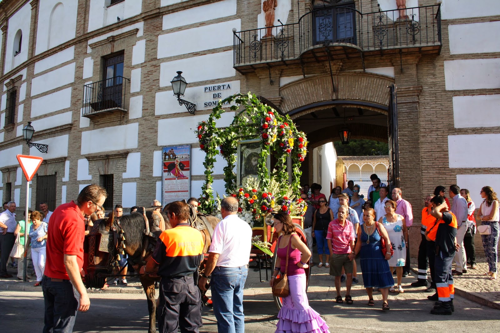 Tras la Solemne Función Religiosa, se hará entrega de medallas y se procederá a poder besar y acercarse al venerado cuadro. Tras dicho momento emotivo, en torno a las nueve y media de la mañana, dará comienzo el traslado en Romería saliendo desde la Plaza de Toros y pasando por Plaza Castilla, Avenida Pio XII, Ronda Intermedia, José María Fernández, Doctor Diego Aragón, Carretera de Sevilla y Ermita del Señor de la Verónica hasta ser de nuevo depositado en su capilla. A dicha peregrinación, suelen acompañar caballistas y mujeres ataviadas de flamenca.