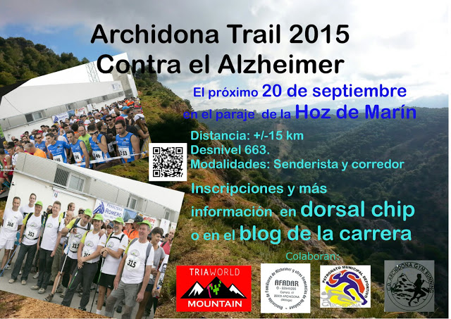 Mañana Archidona celebrará en el paraje de la Hoz de Marín la ‘Archidona Trail contra el Alzheimer’. 15 kilómetros que se puede realizar en modalidad de corredor o senderista. Kilómetros que en total recogen un total de 663 desniveles.