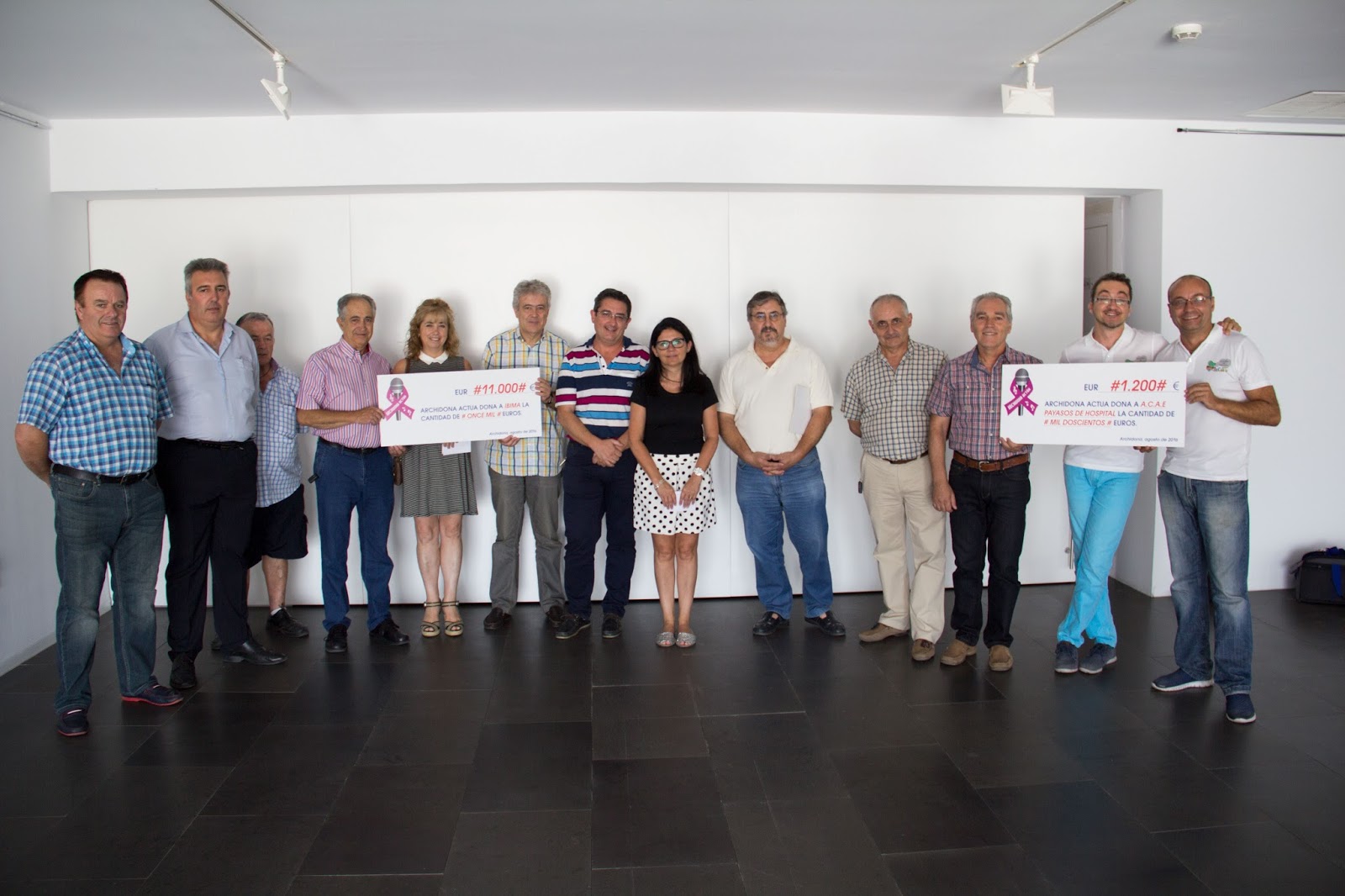La asociación Archidona Actúa ha entregado 11.000 euros a la Fundación IBIMA (Instituto de Investigación Biomédica de Málaga) y 1.200 euros para la malagueña Payasos de Hospital, fondos procedentes de la recaudación obtenida en la última Gala Playback, celebrada recientemente en el Colegio de San Sebastián.