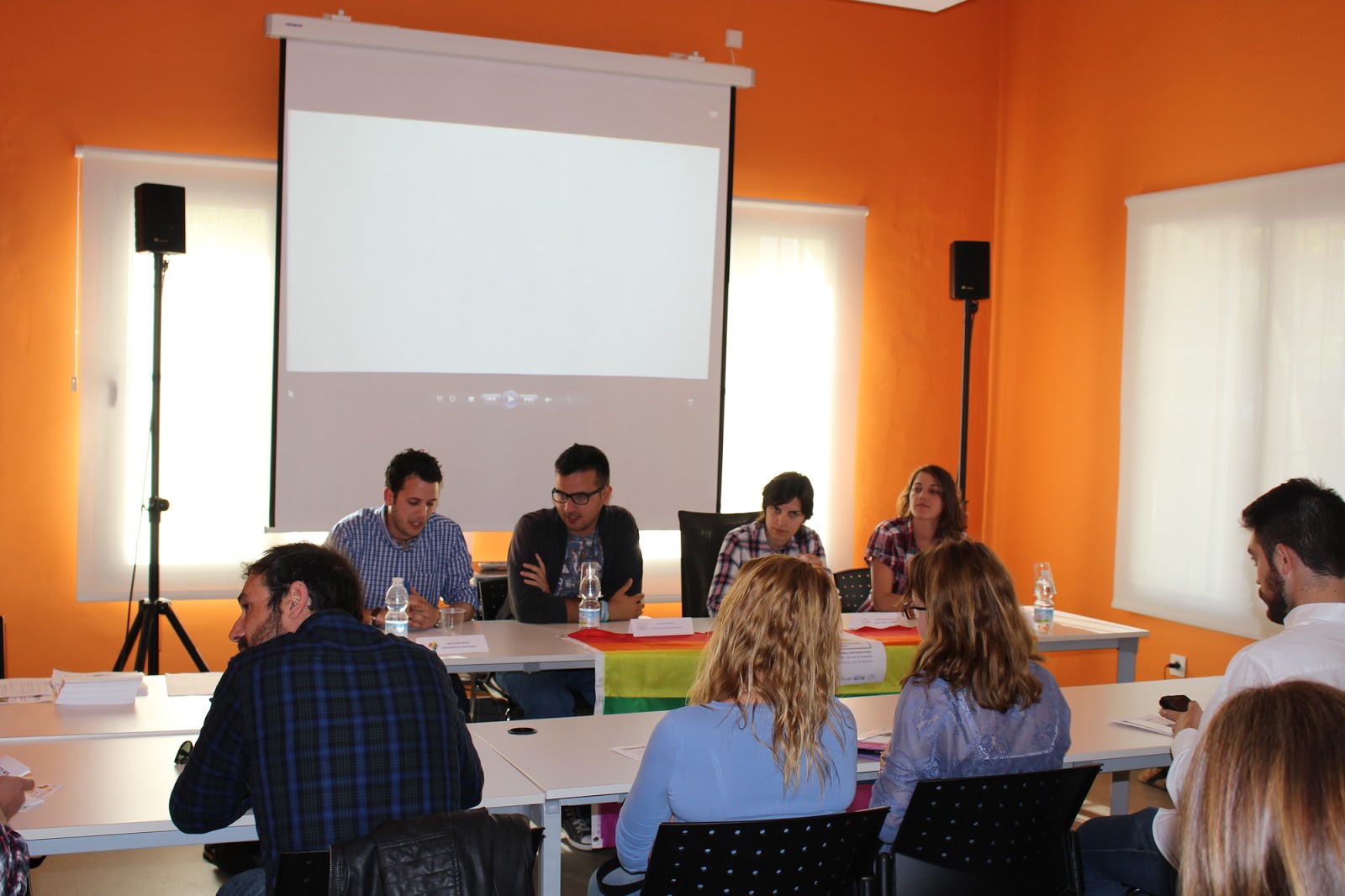 La jornada comenzó con la proyección de tres cortometrajes -‘La Chica de la Barra’, ‘Todo queda en Familia’ y ‘Vestido Nuevo’- y los vídeos ‘Stop Homofobia’, de la Federación Andaluza Arco Iris LGBTI y sobre ’17 Mayo, campaña Internacional contra la LGBTIfobia, IDAHOT’