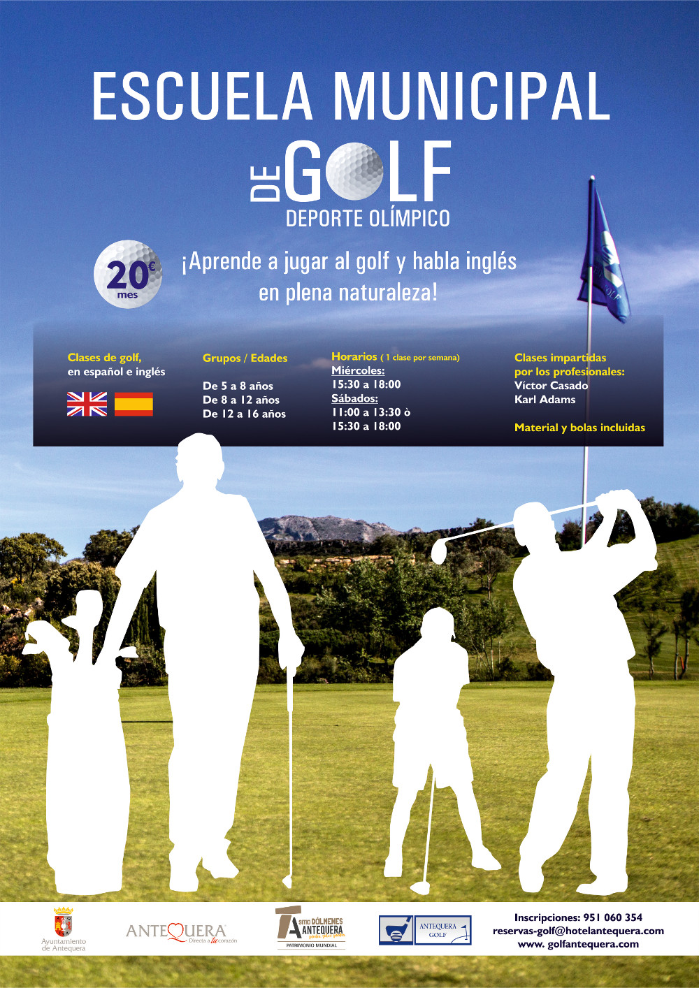 El Ayuntamiento de Antequera pone en marcha una Escuela Municipal de Golf, en colaboración con el Grupo Antequera Golf, con el objetivo de fomentar la práctica de este deporte olímpico en los jóvenes mientras, además, aprenden inglés dando clases de esta disciplina en plena naturaleza.