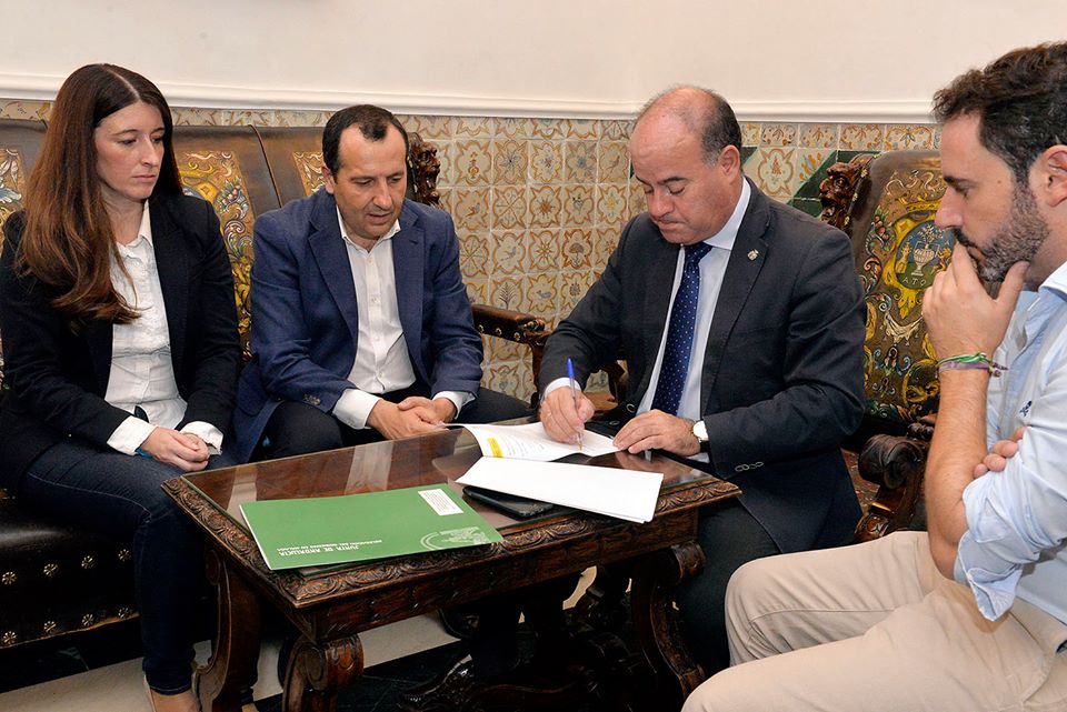 El delegado territorial del Ejecutivo andaluz en Málaga, José Luis Ruiz Espejo y el alcalde de Antequera, Manolo Barón, mantuvieron ayer un encuentro en el Consistorio, acompañados por el primer teniente de alcalde y delegado de Obras, José Ramón Carmona y la concejala de Urbanismo, Teresa Molina; para rubricar el documento.