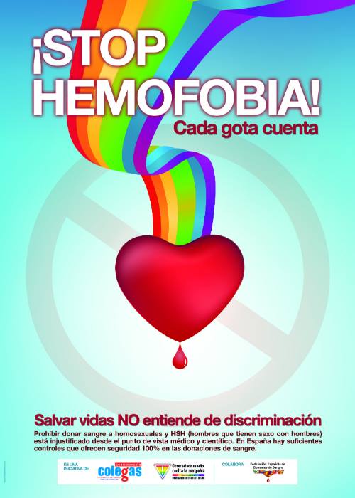 El Observatorio Español contra la LGBTfobia (STOPLGBTFOBIA) junto a la COLEGAS-Confederación LGBT Española lanzan la campaña “STOP HEMOFOBIA: Cada gota cuenta”, que cuenta con la colaboración de la Federación Española de Donantes de Sangre.
