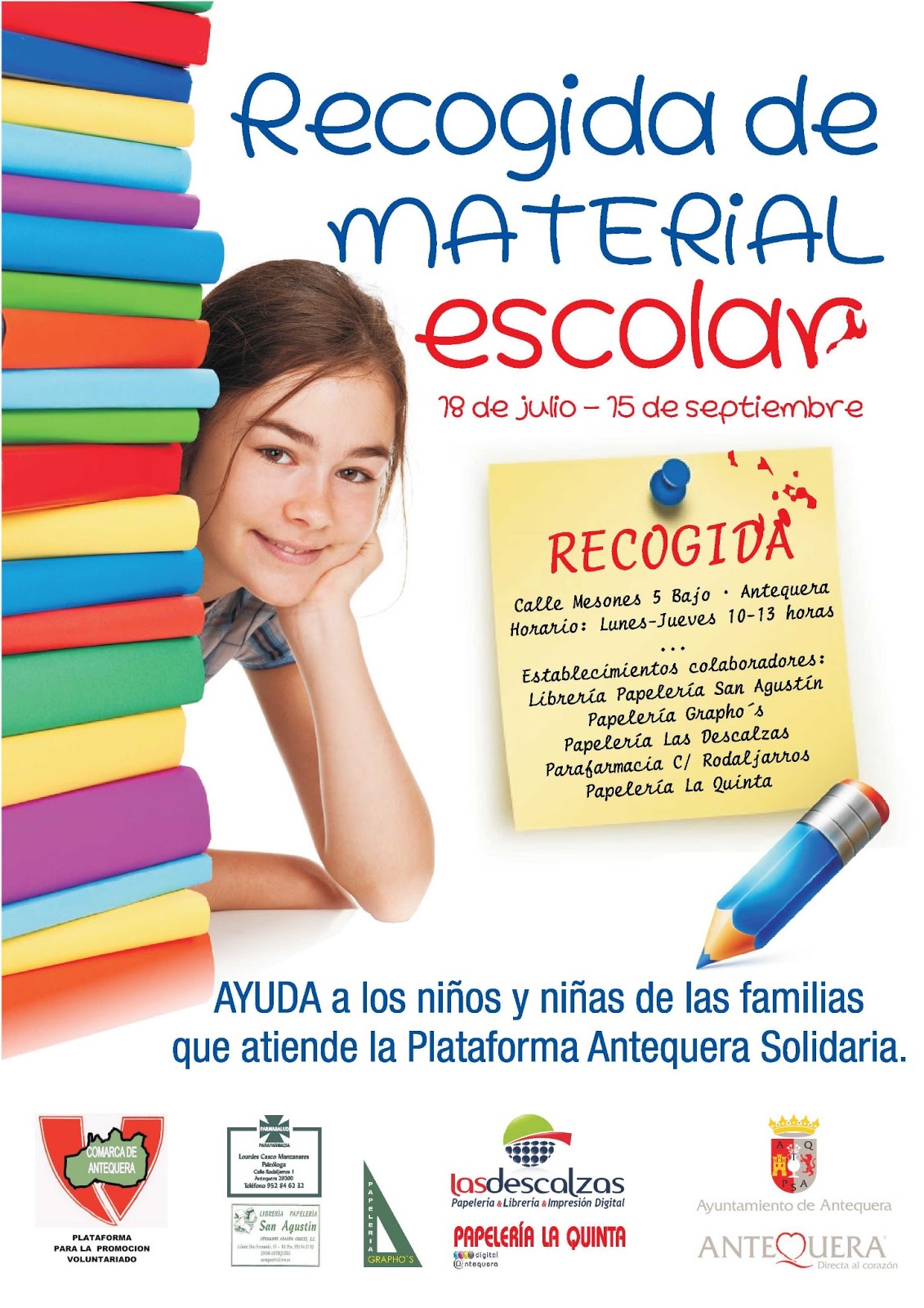 bolígrafos, gomas, sacapuntas, diccionarios, folios, etc). El material, rogamos lo entreguen en los puntos
