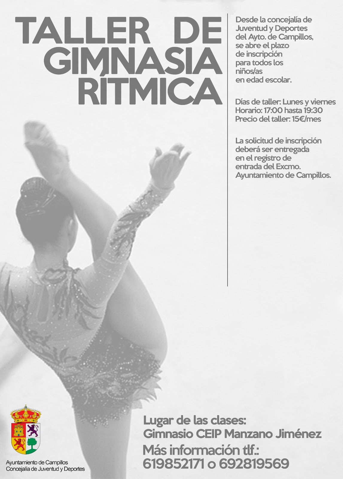La concejalía de Juventud y Deportes del Ayuntamiento de Campillos ha organizado un taller de gimnasia rítmica, que se desarrollará durante los próximos meses en la localidad. Esta actividad dará comienzo el próximo cinco de octubre y se prolongará durante todo el curso escolar.
