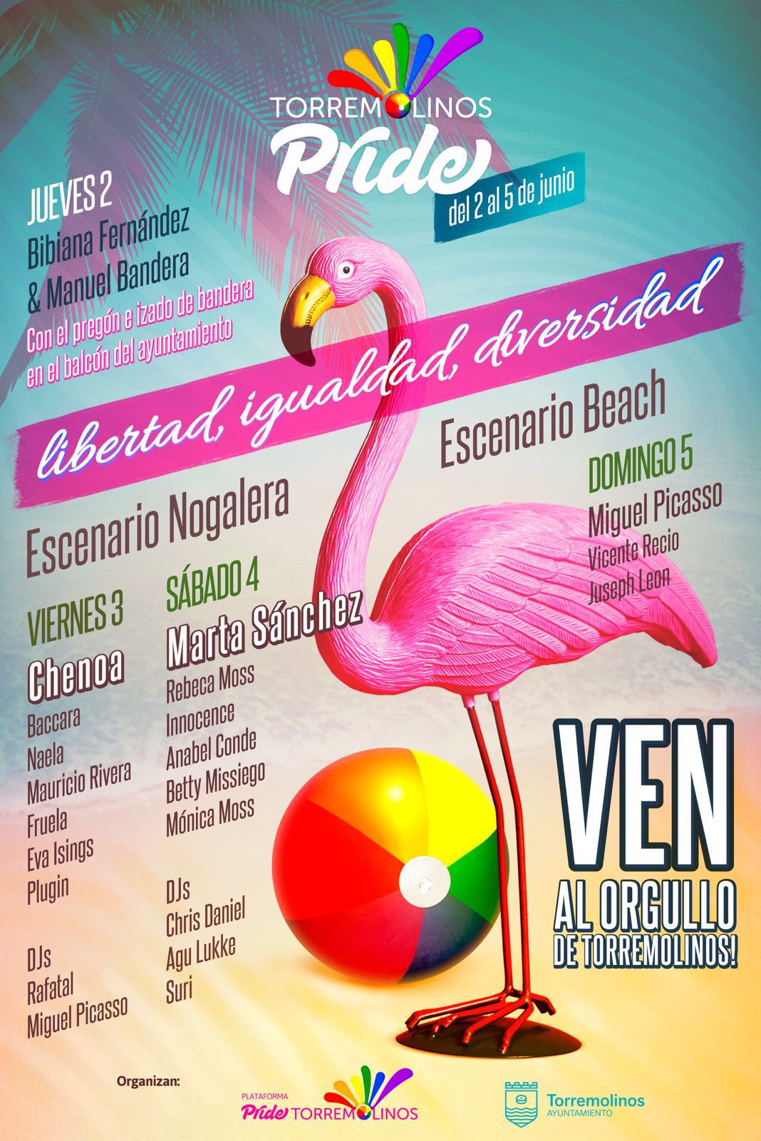 Será una manifestación que tendrá lugar el sábado 4 de Junio a partir de las 18.00 horas desde el Ayuntamiento de Torremolinos con el siguiente recorrido: Ayuntamiento de Torremolinos (en la Plaza Blas Infante, 1), calle Europa, Avenida de Isabel Manoja, Avenida Manantiales, Plaza Costa del Sol y fin en la Plaza de la Nogalera donde en el escenario se hará lectura del Manifiesto y dará comienzo la fiesta.