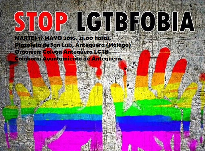 Con motivo de la llegada del día contra la LGBTFobia (17 de Mayo), Colega Antequera LGTB volverá a desarrollar un acto de concienciación y homenaje a las personas que han sido víctimas de los delitos de odio por LGBTFobia, donde el Colectivo también hará lectura de su Manifiesto con motivo de este día.