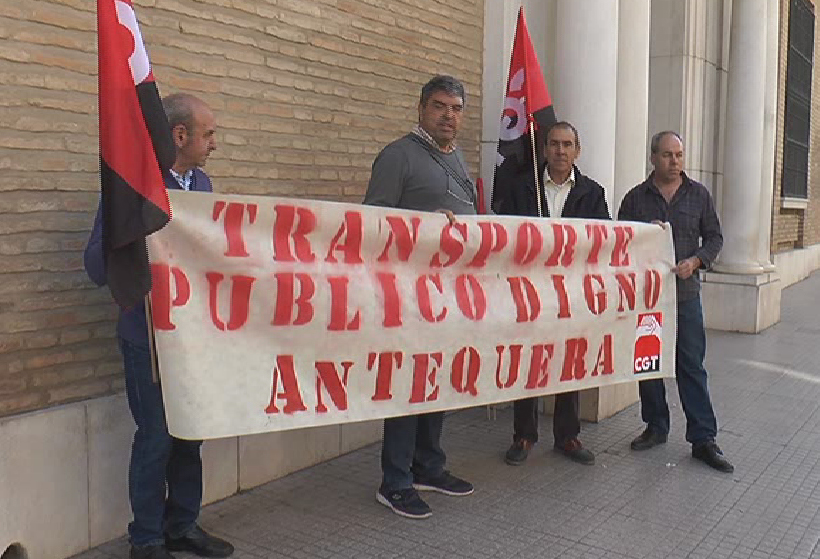 Trabajadores del servicio de transporte urbano de Antequera se han concentrado este lunes a las puertas del Ayuntamiento para hacer una nueva llamada de atención, tanto al equipo de Gobierno, como los grupos de la oposición, sobre el transporte público y la situación de «incretidumbre» en la que se encuentran sus trabajadores.
