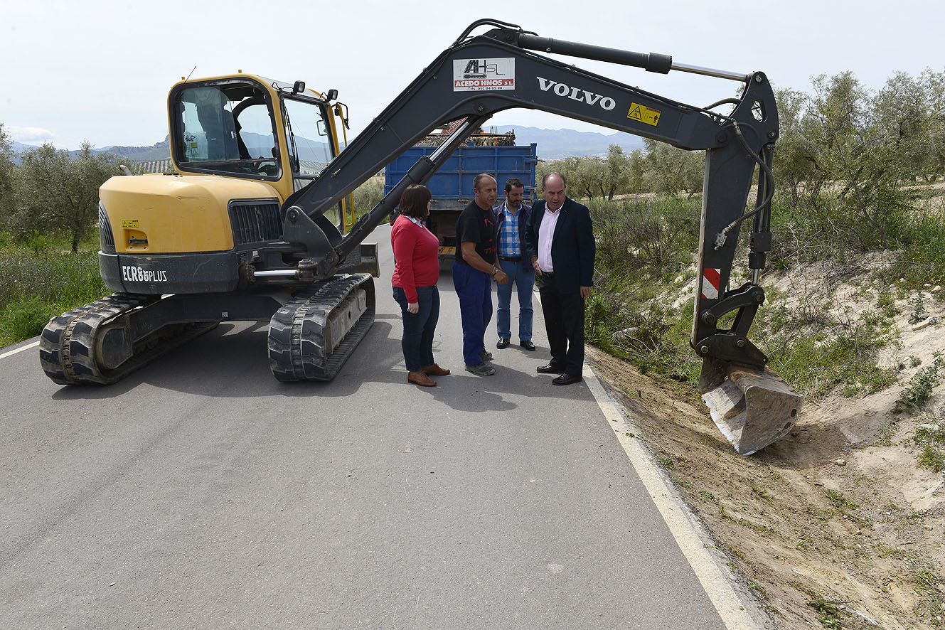 El alcalde Manuel Barón y el concejal delegado de Obras y Mantenimiento, José Ramón Carmona, han podido conocer cómo se está trabajando en esta carretera, tras una visita realizada al anejo, en la que estuvieron acompañados por alcaldesa pedánea, Ana Belén Pérez.