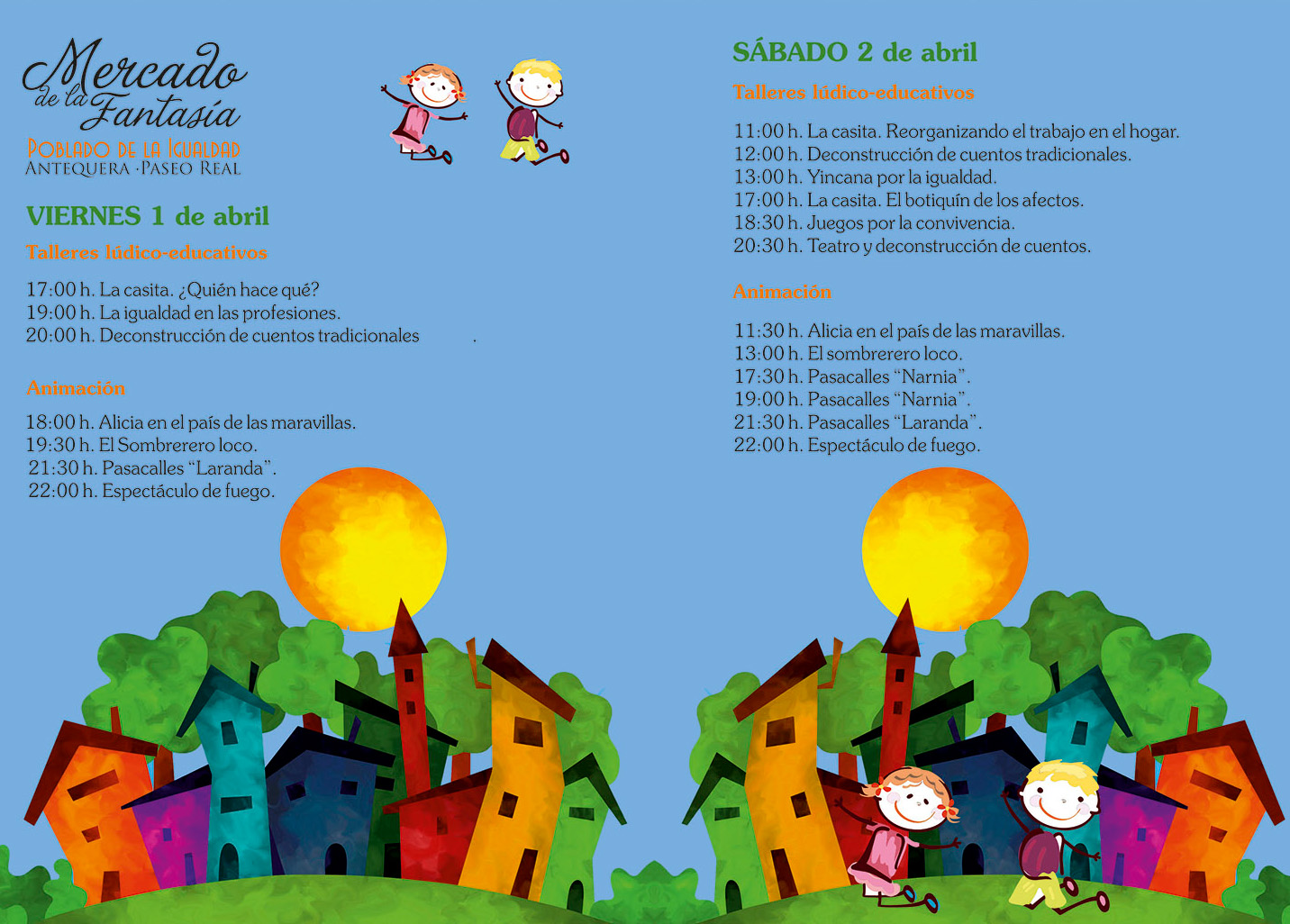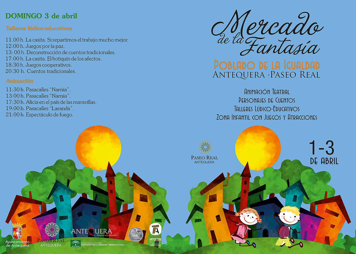 Este viernes 1 de abril y hasta el domingo día 3 se celebrará el ‘Mercado de la Fantasía, Poblado de la Igualdad‘, un espacio lúdico-educativo con actividades y talleres para promover la igualdad en la población infantil (niños y niñas de 4 a 10 años), que se iba a realizar con motivo del Día Internacional de la Mujer y que tuvo que ser suspendido hace algunas semanas por las inclemencias meteorológicas. Esta actividad es gratuita y se desarrollará en el Paseo Real. Los espacios dentro del poblado serán: