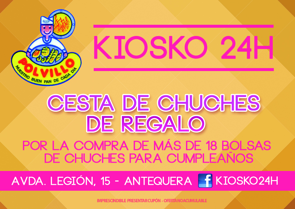 Inactivos [CUPÓN] Por la compra de más de 18 bolsas de chuches para cumpleaños de regalo una cesta de chuches en Kiosko 24H Por Redacción Las 4 Esquinas - 14 de agosto de 2015 1 70 FacebookTwitterPinterestWhatsApp Por la compra de más de 18 bolsas de chuches para cumpleaños de regalos un cesta de chuches. Enseña este cupón imprimiéndolo o directamente desde tu móvil en el establecimiento. Están en Avenida de la Legión, 15 en Antequera. PUBLICIDAD