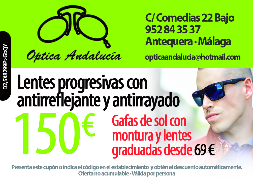 Inactivos [DESCARGAR] Ofertas en gafas en óptica Andalucía Por Redacción Las 4 Esquinas - 21 de junio de 2016 1 79 FacebookTwitterPinterestWhatsApp Enseña este cupón imprimiéndolo o directamente desde tu móvil en el establecimiento. Están en Calle Comedias, 22 bajo en Antequera, teléfono 952 84 35 37 PUBLICIDAD