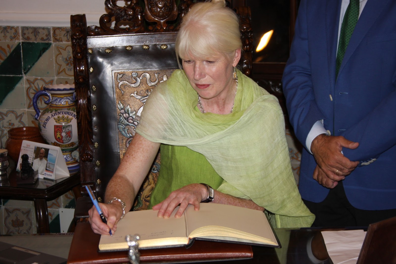 En el Consistorio, Gowen pudo conocer las distintas salas del edificio y, finalmente, dejó reflejada una dedicatoria en el Libro de Honores de la ciudad.
