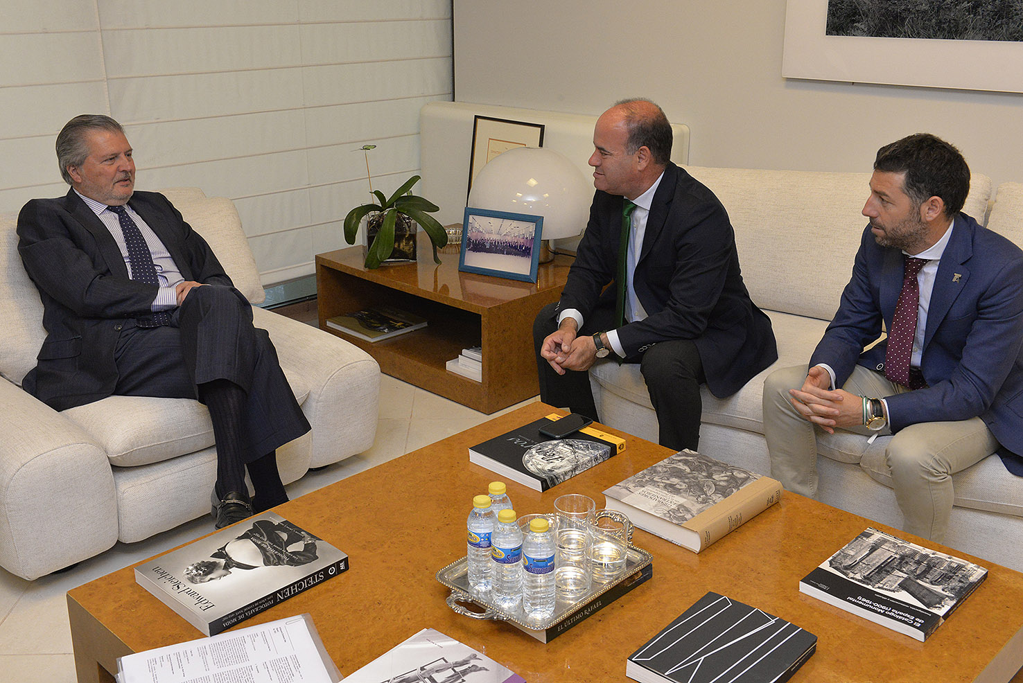 El alcalde de Antequera, Manuel Barón, y el teniente de alcalde delegado de Patrimonio Mundial, Juan Rosas, se han desplazado esta mañana hasta Madrid con el objetivo de ultimar los detalles relativos a la Convención del Comité de Patrimonio Mundial que se celebrará en julio en Estambul y en la que se decidirá definitivamente si la candidatura del Sitio de los Dólmenes de Antequera será incluida en la lista indicativa de Patrimonio Mundial de la UNESCO. En la capital de España, los representantes antequeranos han mantenido un encuentro con el ministro de Educación, Cultura y Deporte, Íñigo Méndez de Vigo, y el director general de Bellas Artes y Bienes Culturales, Miguel Ángel Recio.