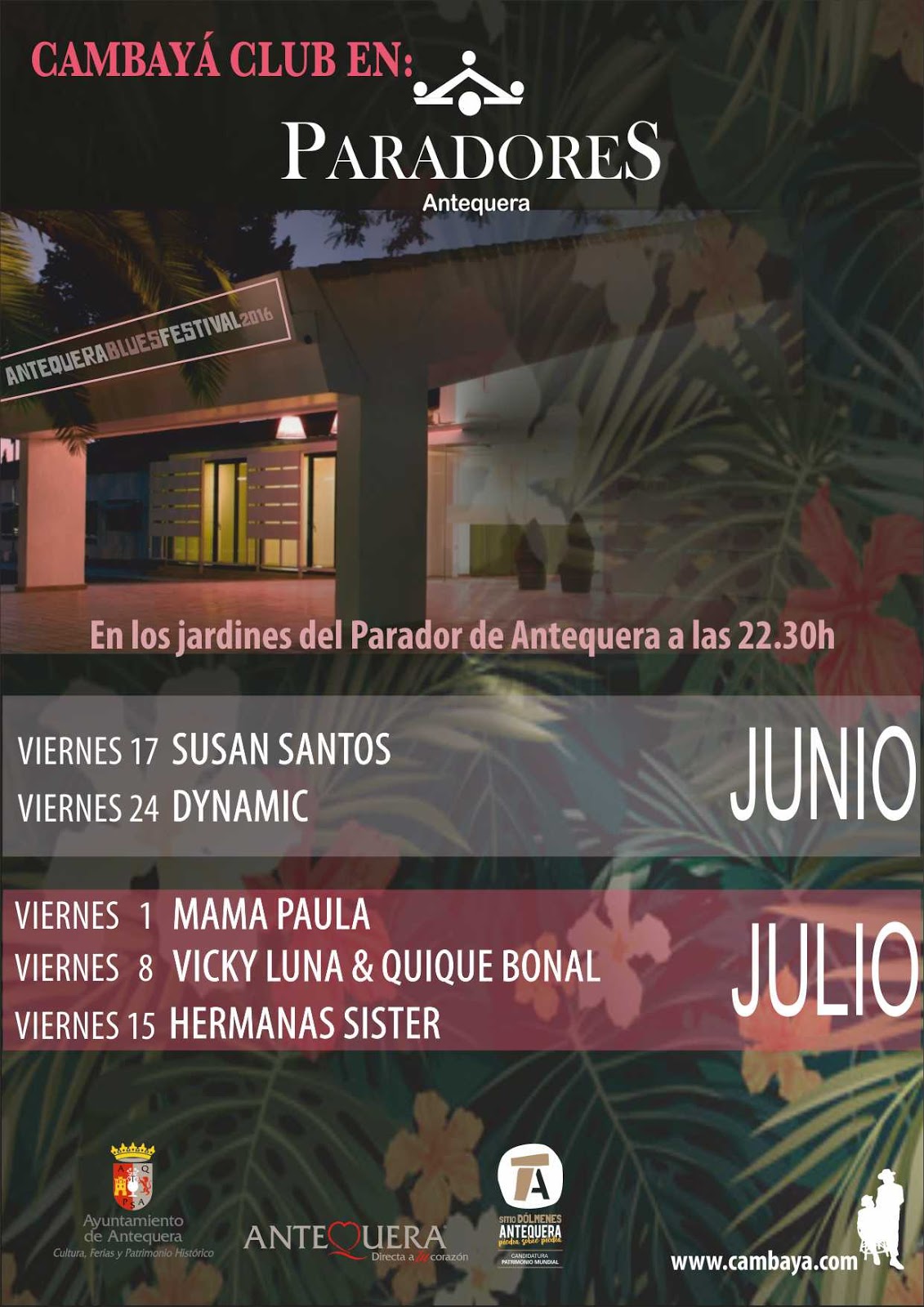 Además, como ya ocurriera el año pasado, el festival contará con una serie de actividades paralelas que se desarrollarán en los jardines del Parador de Turismo de Antequera durante los días 17 y 24 de junio, y 1,8 y 15 de julio. Concretamente, tendrán lugar las actuaciones de Susan Santos, Dynamic, Mama Paula Blues Band, Hermanas Sister y Vicki Luna y Kike Bonat. El precio para cada uno de estos conciertos será de cinco euros.