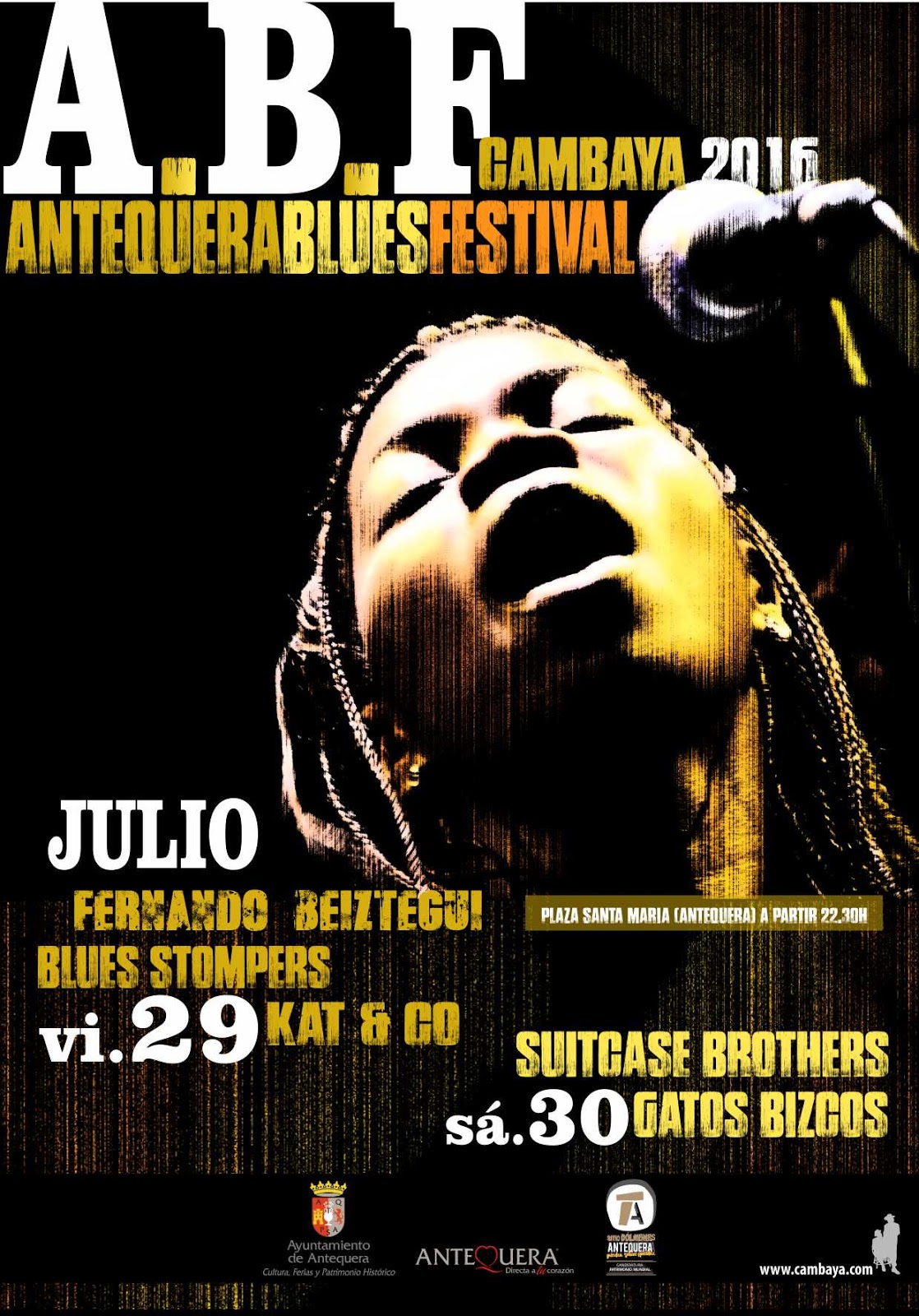 El Antequera Blues Festival Cambayá 2016 calienta motores. Ya se conocen los protagonistas del cartel de la vigesimosexta edición, que se desarrollará los días 29 y 30 de julio en la Plaza de los Escribanos, emplazamiento en el que viene siendo habitual.