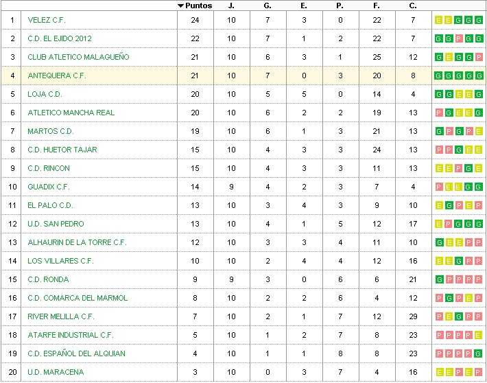 El Antequera C.F consigue la sexta victoria consecutiva con un 1 – 4 frente a el River Melilla que le coloca en 4ª posición igualado a puntos con el Club Atlético Malagueño y a tres puntos de el primer clasificado.