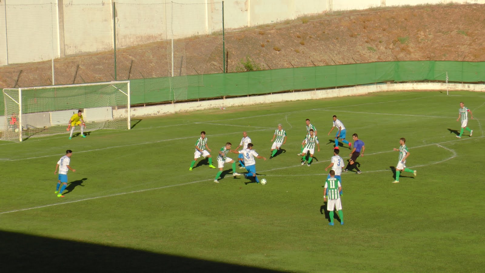 A poco estuvo el conjunto local de llevarse una manita del último encuentro disputado ayer frente a El Palo. A pesar de que el equipo blanquiverde se encontró desde el primer minuto un Palo echado atrás y cerrando huecos, ya en el 7’ Sutil hizo que el equipo local enseñara los dientes con un lanzamiento y sacó con los puños el portero. Fue un minuto antes de dejar el campo lesionado. Poco después de la entrada al campo de Dani del Pozo en su lugar el Antequra a través de Juanillo inaugura el marcador.