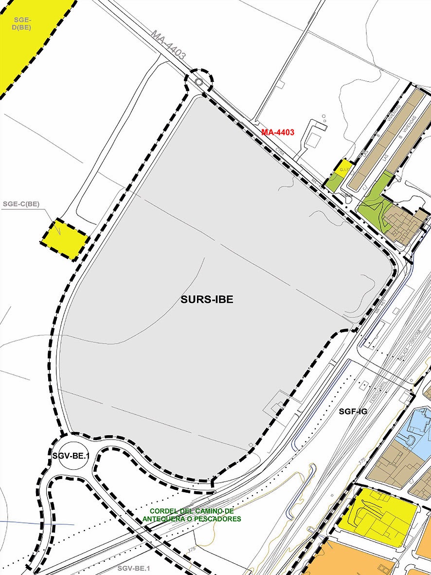 La zona en cuestión está ubicada junto a la carretera provincial MA-4403 y ocupa una superficie de 84.750 metros cuadrados, cuyo uso aprobado desde hoy será el indus- trial. El índice de edificabilidad es de 0,45 m2t/m2s, siendo los metros de techo máximo edificables 38.137,85 metros cuadrados. La única consideración en base a modificación propuesta es que se establece una zona de protección de 50 metros de distancia desde la tapia del Cementerio, como límite libre de toda construcción, que podrá ser considerada como Sistema Local de Espacios Libres para dar cumplimiento así a lo dispuesto en la legislación vigente al respecto.