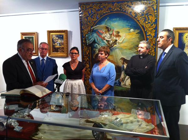 La Sala de Exposiciones del Ayuntamiento de Archidona acogió la inauguración de la exposición ´Enseres. IV Siglos de Oración´ de la cofradía del Huerto, con la que se sigue celebrando el cuarto centenario de esta hermandad. En la muestra se puede ver parte del ajuar de la Virgen del Amparo, las túnicas de procesión de Nuestro Padre Orando en el Huerto y de Jesús Preso, la primera y última túnica del Ángel que recita la Embajá, el techo de palio del trono de la Virgen del Amparo o los libros de actas de la hermandad.