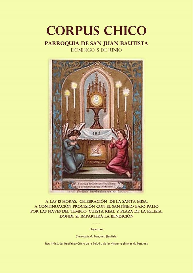 La Parroquia de San Juan Bautista y la Hermandad del Santísimo Cristo de la Salud y de las Aguas y Ánimas de San Juan organizan la Celebración del Corpus Chico de la Parroquia de San Juan de Antequera.