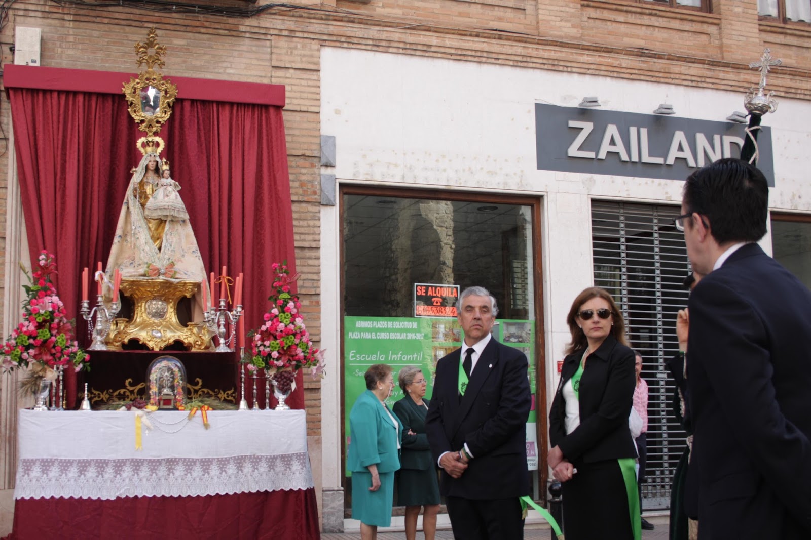 Francisco José Gutiérrez dirigió el trono en el que sus hermanacos portaban a la Devota Imagen Mariana con banda de colores celeste y rosa propios de la Asociación. Un colectivo que lleva en nuestra ciudad más de sesenta y cinco años y que en actualmente preside Carmen Carrasco. Se trata de una Asociación que venera durante todo el año a María Auxiliadora, muy vinculada con la Orden Salesiana y que cada 24 del mes celebra cultos en su honor en su templo.