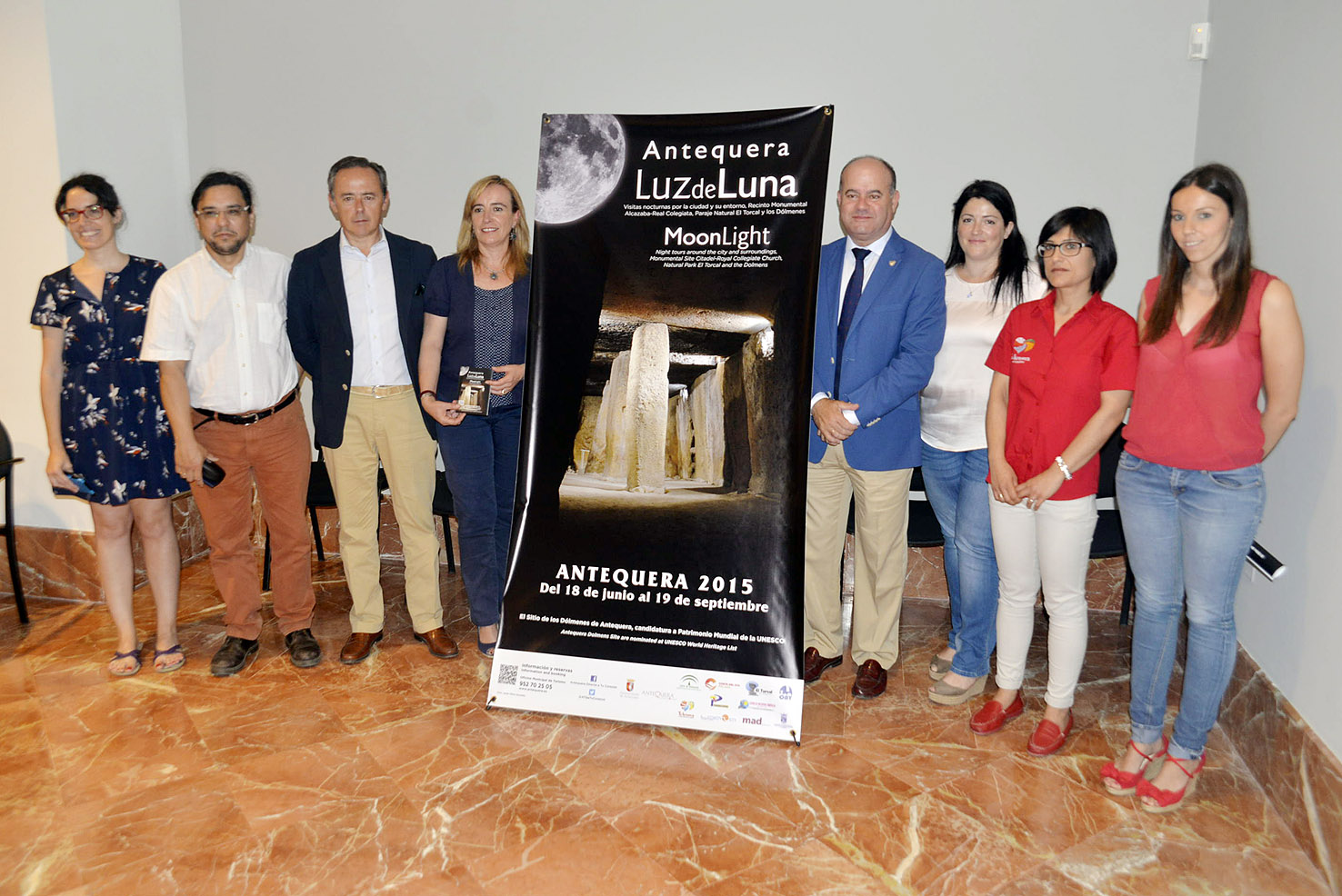 El alcalde de Antequera, Manuel Barón, y la teniente de alcalde de Empleo, Turismo y Comercio, Belén Jiménez, han presentado en la mañana de hoy la edición 2015 del ciclo de visitas nocturnas «Antequera, Luz de Luna», que en esta ocasión se desarrollará del 18 de junio al 19 de septiembre.