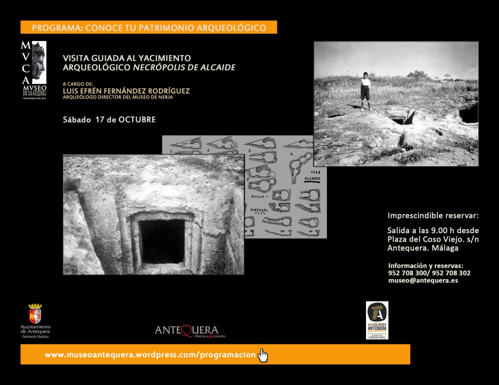 Dentro de la tercera edición del programa: “Conoce tu Patrimonio Arqueológico”,el Museo de la Ciudad de Antequera (MVCA) organiza el 17 de octubre una visita guiada al yacimiento“Necrópolis de Alcaide“, a cargo del prehistoriador Luis Efrén Fernández Rodríguez, arqueólogo director del Museo de Nerja.