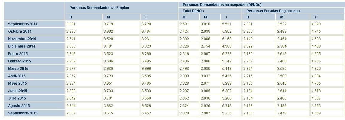 Pese a ello, en la comparativa con septiembre del pasado año se experimenta una bajada de 164 personas, ya que en 2014 encontrábamos en el noveno mes del calendario hasta 4.823 parados.