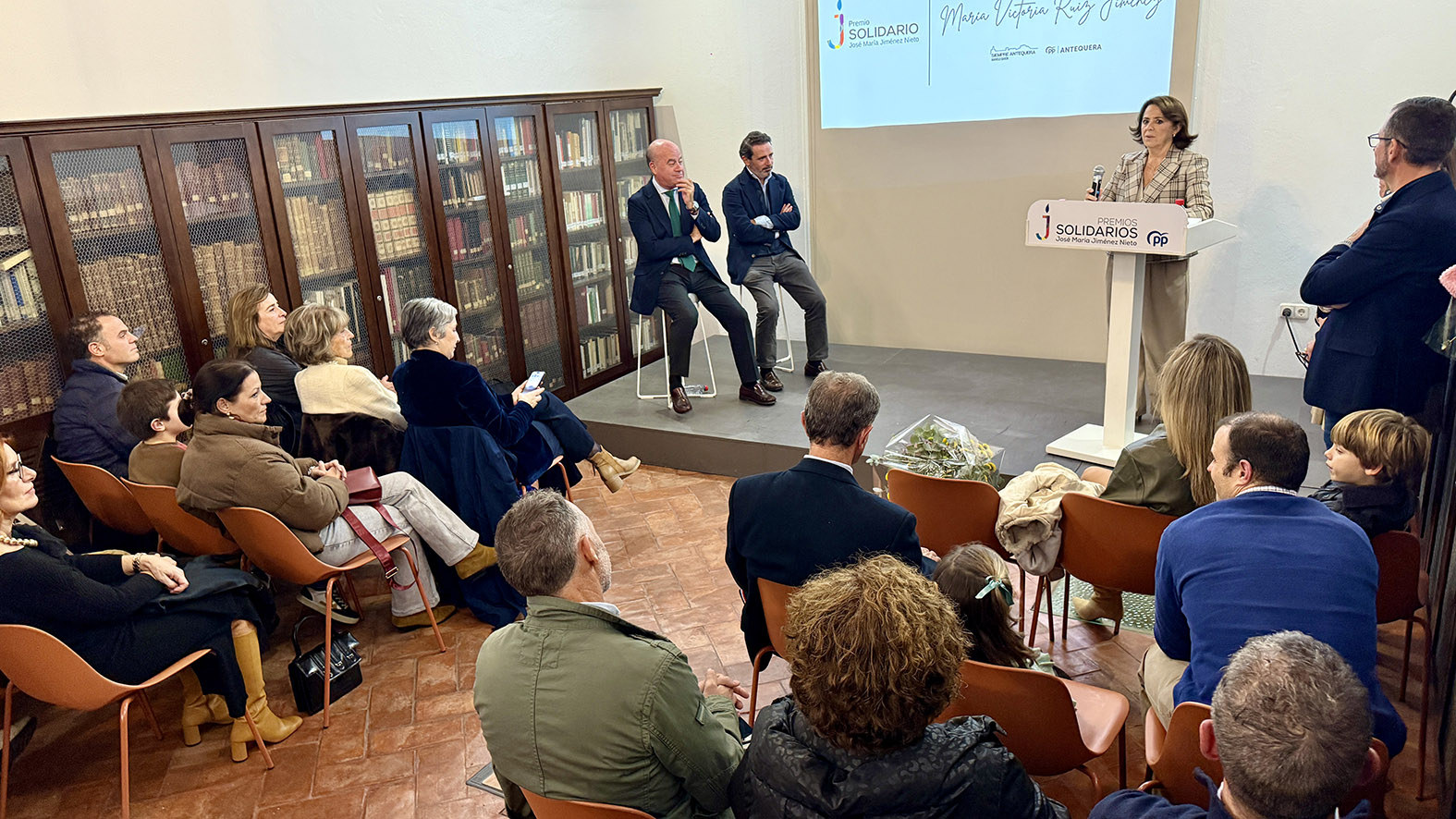 La Sala Antequerana Antonio Parejo del edificio de la Biblioteca Municipal de San Zoilo ha acogido en la tarde de hoy jueves 20 de noviembre la entrega del IV Premio Solidario José María Jiménez Nieto, un reconocimiento promovido por el Partido Popular de Antequera para poner en valor la labor social y humana de aquellas personas cuya vida está marcada por el servicio a los demás. En esta edición, el galardón ha recaído en María Victoria Ruiz Jiménez, antequerana de profunda vocación solidaria y actual vicepresidenta de Bancosol en Málaga.