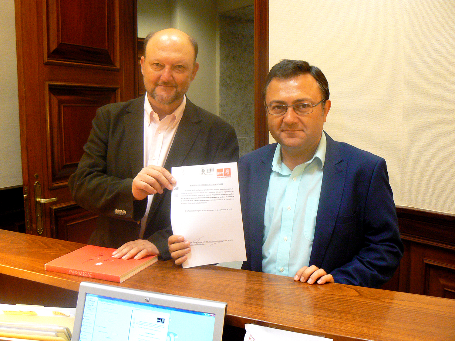 El secretario general del PSOE de Málaga y del grupo parlamentario socialista, Miguel Ángel Heredia, ha presentado en el Congreso de los Diputados, acompañado del coordinador de la Interparlamentaria del PSOE de Andalucía, Antonio Pradas, la proposición no de ley en la que se insta al Gobierno a que, de manera inmediata, apruebe el trasvase de, como máximo, 5 hectómetros cúbicos desde el pantano de Iznájar (Córdoba) a la zona norte de Antequera.