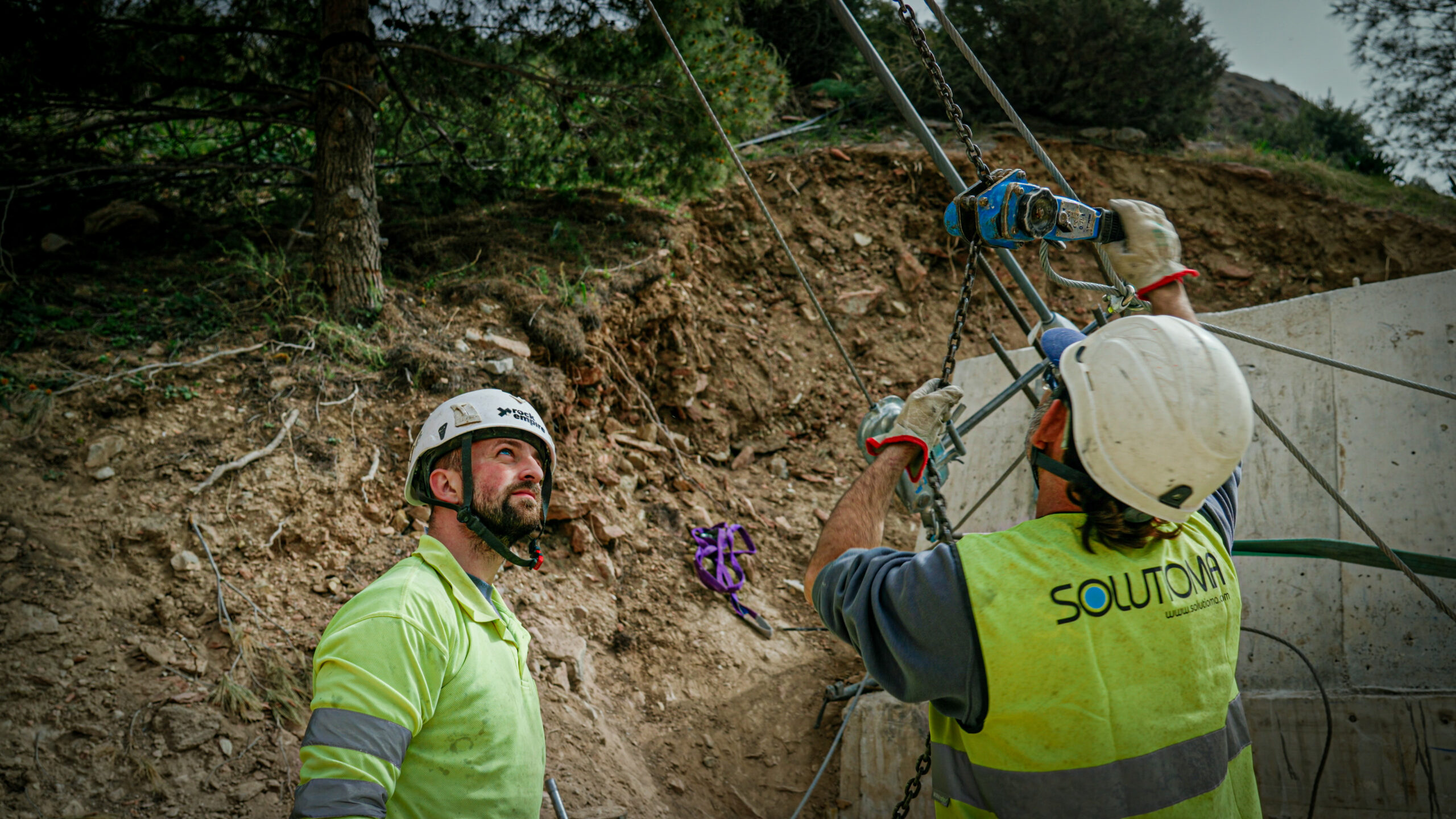 El terreno ha condicionado los métodos de instalación. La zona presenta diaclasas —fracturas en la roca— porque fue en su día un fondo marino, lo que ha obligado a realizar perforaciones de hasta ocho metros e inyecciones de cemento. En la ladera opuesta, un estudio geológico detectó una zona de derrubios que exigió ampliar la profundidad de los pilotes en seis metros adicionales, además de incorporar micropilotes e inyecciones ramificadas.