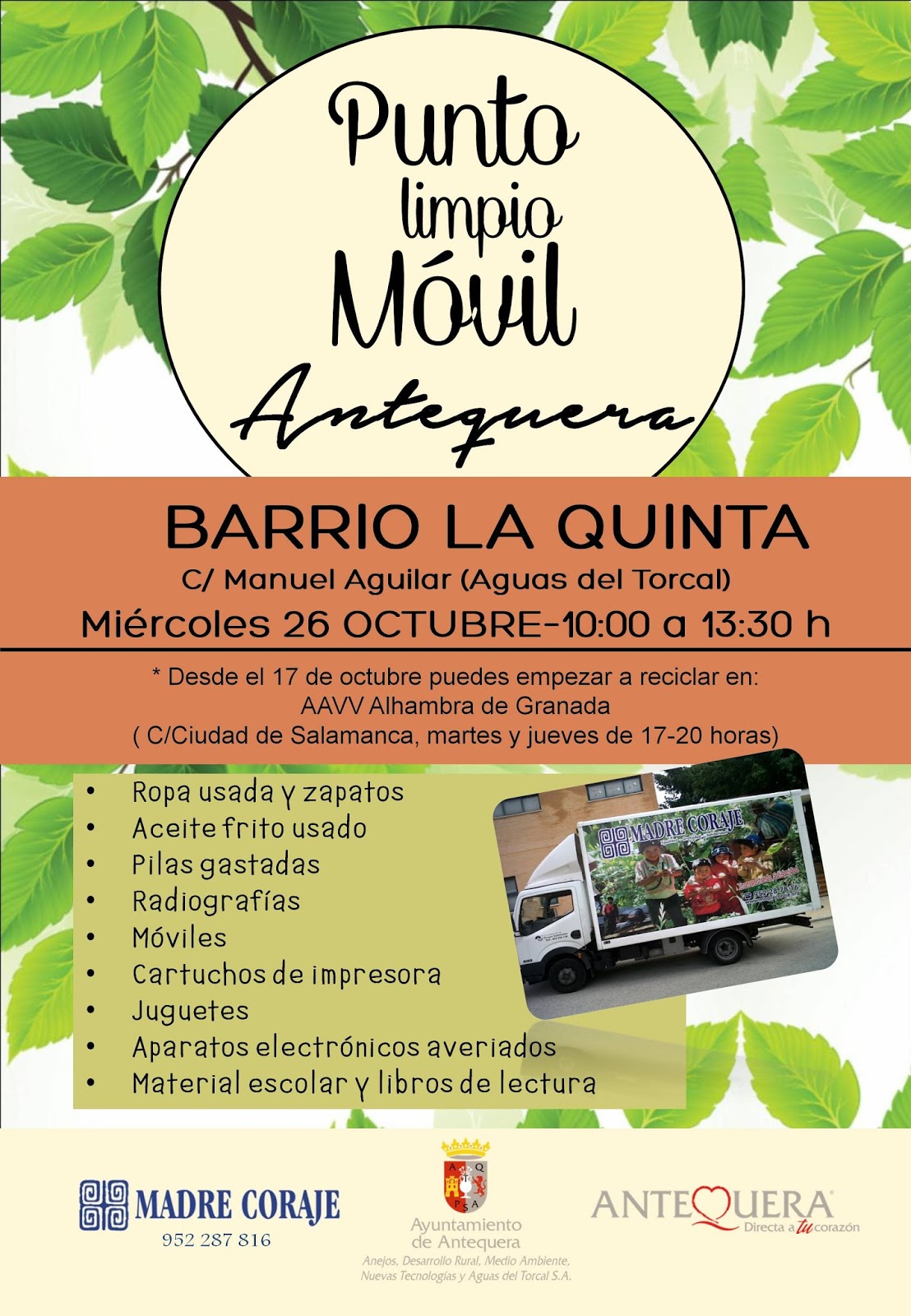 octubre, el Punto Limpio Móvil de Madre Coraje se instalará en las