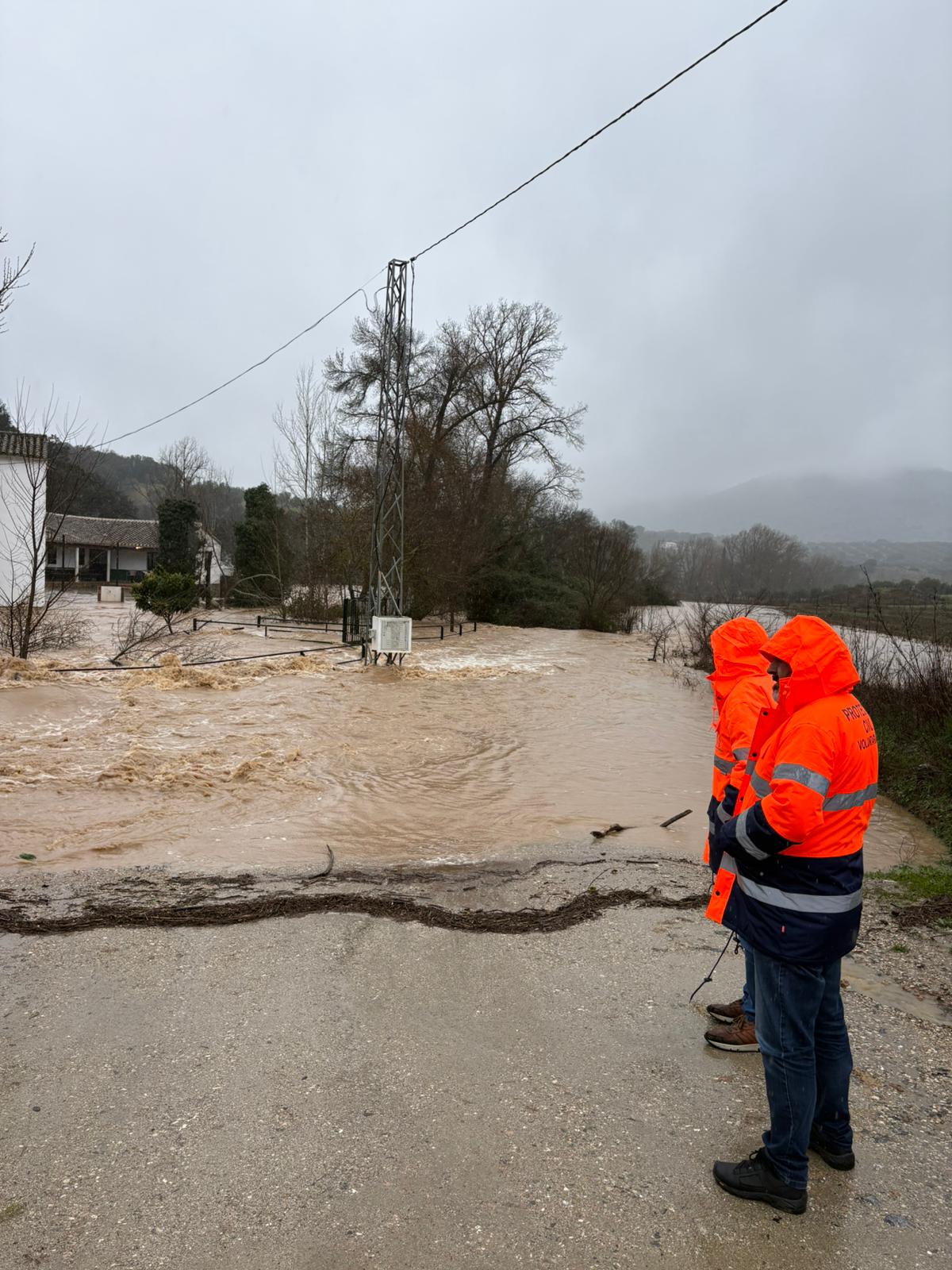 En Campillos, el foco de atención se centra en la vía que conecta el municipio con Los Corrales y la crecida del arroyo. La existencia de grandes balsas de agua en el asfalto ha llevado al Ayuntamiento a recomendar evitar esta ruta.